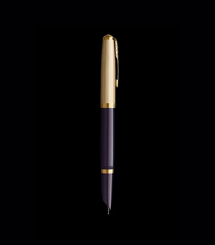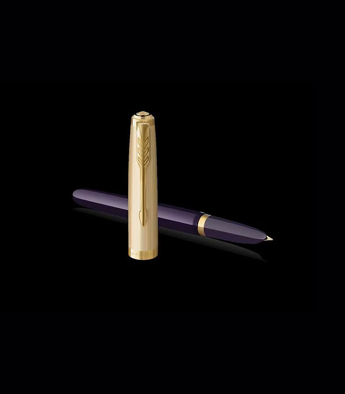 Crafted with a rich plum-coloured precious resin barrel, the pen features a luxurious chiselled gold-plated cap and trims, including the signature Parker arrow clip that symbolizes the brand’s heritage. Its hooded 18 k solid gold nib delivers a smooth, consistent ink flow and a superbly comfortable writing experience that elevates daily notes, letters, and signatures.
