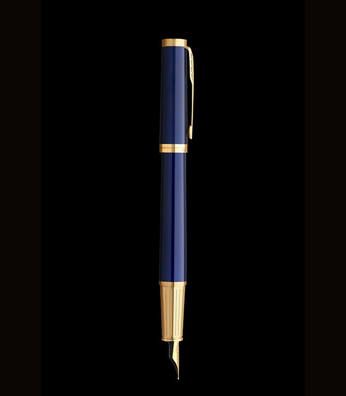 The Parker Ingenuity Blue Lacquer GT Fountain Pen – Fine Nib features a rich blue lacquer finish with elegant gold trim and a precision fine nib, delivering smooth, refined, and controlled writing performance.