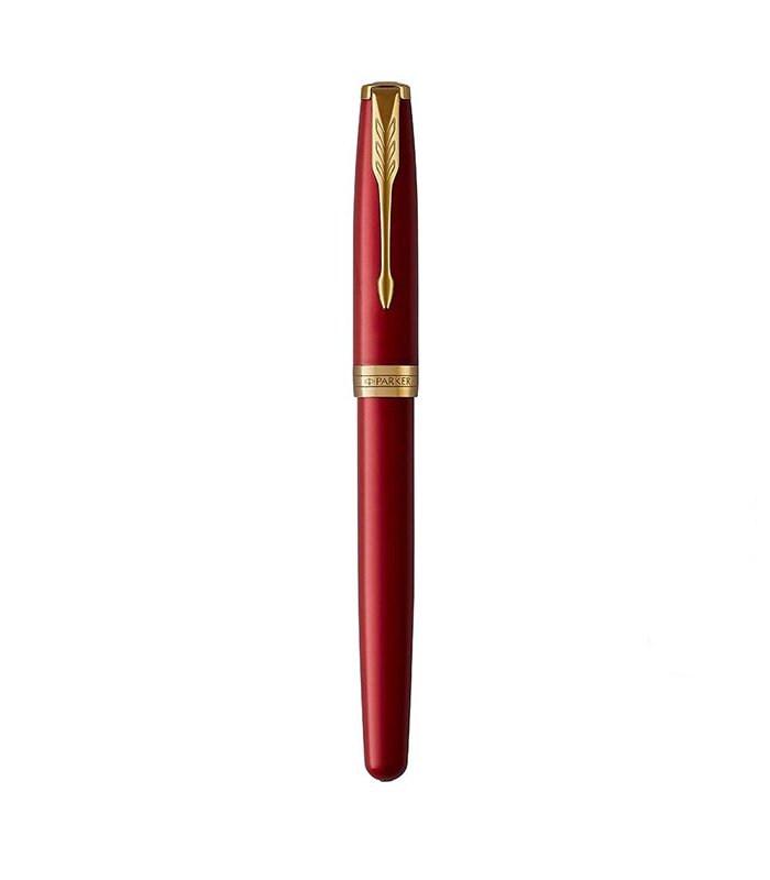 The Parker Sonnet Intense Red GT Fountain Pen showcases a bold red lacquer finish accented with elegant gold trim.