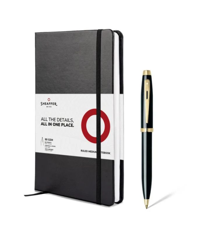 Sheaffer Giftset Glossy Black 100 Ballpoint Pen with GT and Medium Notebook 9322