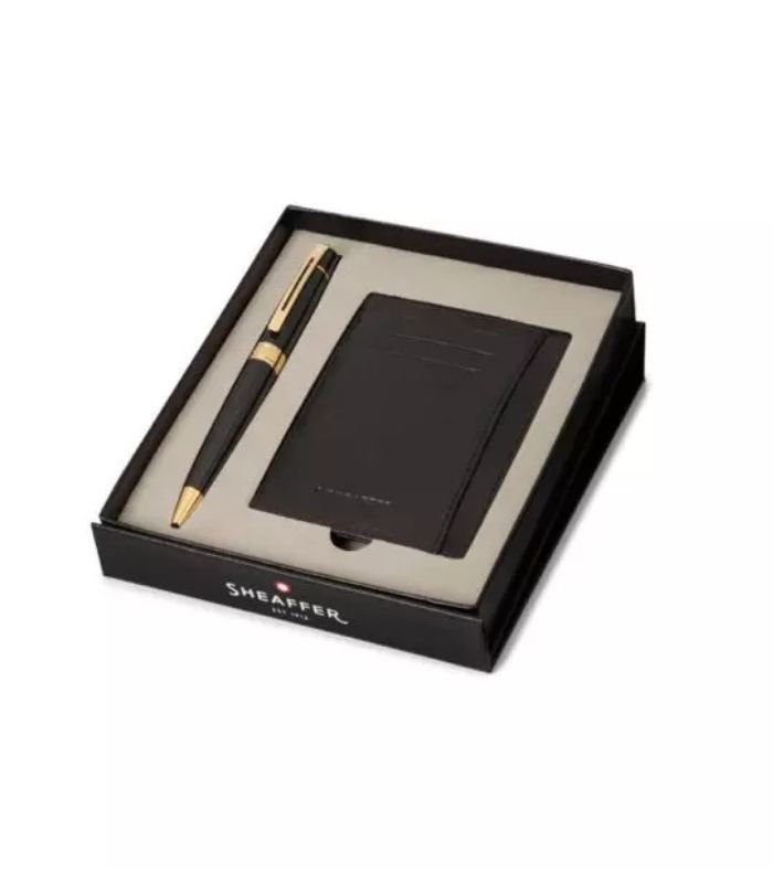 Sheaffer Giftset Glossy Black 300 Ballpoint Pen with GT and Card Holder 9325
